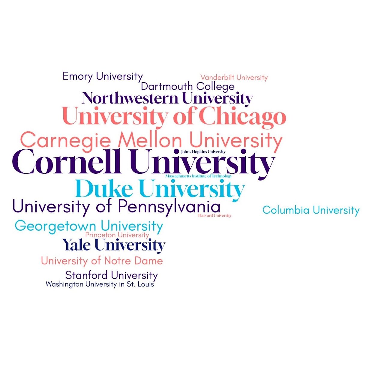 Most students who applied early targeted Top 25 institutions, nearly all of which were private colleges with the exception of the University of Michigan, which introduced a binding early decision program this year. Cornell University was the leading Ivy League destination for our students, an indication that they were a strong fit with the institution’s diverse academic programs and collaborative culture.